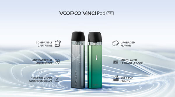 Na těle zařízení se nenachází žádné ovládací tlačítko, nic není potřeba regulovat, ani nastavovat. Jednoduše ji naplníte e-liquidem a můžete začít potahovat, při potažení se spustí žhavení zcela automaticky. V kompletním balení na vás potom čeká upgradovaná cartridge Vinci V2 s ergonomickým a antibakteriálním náustkem. Druhá generace těchto cartridgí nabídne také výraznější chuť a lepší těsnivost celé konstrukce pro absenci vzniku kondenzátu. Cartridge nabídne objem 2 ml a jednoduchý systém vrchního plnění po sejmutí náustku. O optimální tuhost potahu se postará fixní airflow systém se čtyřmi přívodními otvory ve spodní části cartridge. Cartridge nabídne odpor integrovaného tělíska 0,8 ohm pro efektivní náběh žhavení. VooPoo Vinci Pod SE Kit výborně doplňuje celou sérii kompaktních pod systémů Vinci a nabídne nesmírně jednoduché ovládání ve spojení s esteticky dokonalým designem.