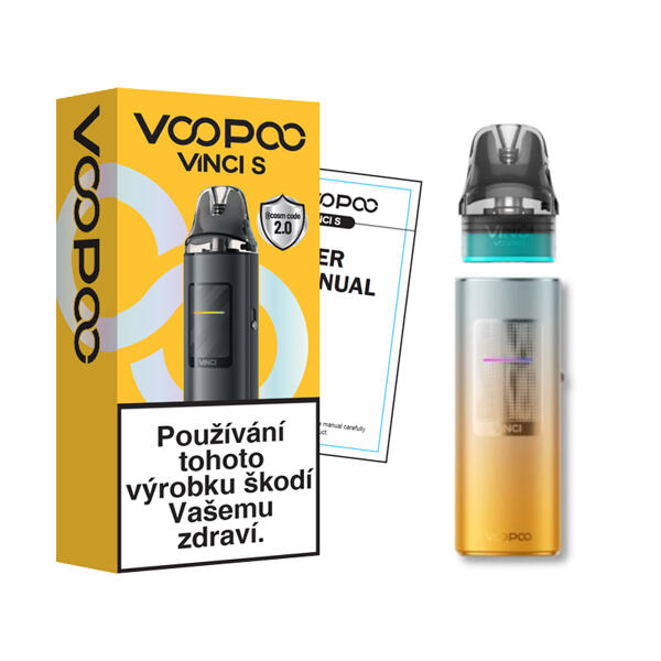 Minimalistický pod systém VooPoo Vinci S Pod Kit představuje vaping nové generace. Nádherně zpracovaný kovový pod s elegantním dílenským zpracováním se pyšní ohromující kapacitou baterie 2000 mAh, plně automatickým provozem včetně automatického nastavení výkonu až do 40 W a automatického spínání potahu a praktickou indikační diodou pro snadné zjištění stavu baterie. Mimo to se můžete těšit na vysoce kvalitní elektroniku v těle a praktickou manuální regulaci přívodu vzduchu pro nastavení optimální tuhosti potahování. Stejnojmenné cartridge Vinci S Pod s technologií iCOSM Code 2.0 se starají o mimořádný chuťový požitek a díky kompatibilitě také s cartridgemi Vinci PnP-X nabízí tato e-cigareta skutečně široké možnosti využití. VooPoo Vinci S Pod Kit - pro vapování bez starostí.