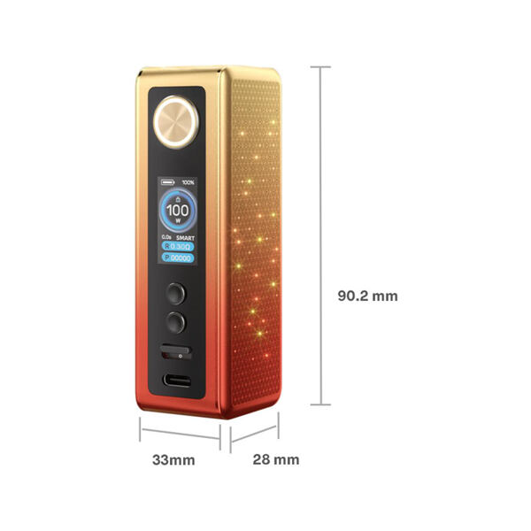 Rozzářete si každý den špičkovým box modem VooPoo Vinci Spark 100 Mod s futuristickým LED panelem imitujícím záři noční oblohy a zamilujte si jednoduché a praktické funkce modu vhodné pro snadné každodenní používání. Mod se představuje s krásně zpracovaným kompaktním tělem doplněným o boční světelný panel posetý drobnými diodami, jež vám připomenou hvězdnou oblohu. Díky slotu pro vlastní baterii a podpoře výstupního výkonu až 100W dokáže oslovit širokou škálu vaperů a se třemi výstupními režimy si snadno přizpůsobíte vaping svým představám. Vrchní část modu potom disponuje již tradičním závitem typu 510 pro osazení vlastním atomizérem. Díky perfektní elektronice dodá mod vynikající výsledky při používání jak tradičních atomizérů na žhavící hlavy, tak také u motacích atomizérů. Vytvořte unikátní atmosféru díky praktickým animacím světelných LED diod na bočním panelu a dvěma schématům uživatelského rozhraní a zamilujte si chutný vaping s minimem starostí.
