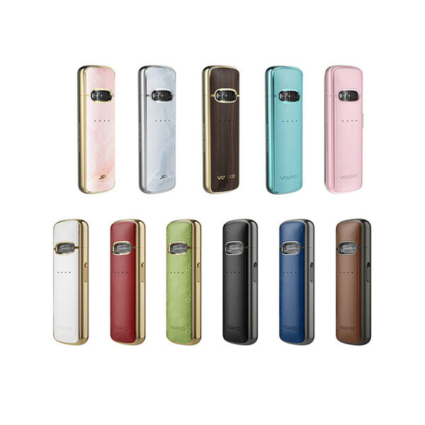 VooPoo VMATE E Pod Kit je nádherně zpracovaná a stylová e-cigareta, která přichází na scénu hned v šesti barvách. Tělo je vyrobeno z kombinace zinkové slitiny a kůže, na výběr budete mít ze tří konvenčních barev s šedou konstrukcí, nebo tři moderní a luxusní barvy s pozlacenou konstrukcí. Rozměry e-cigarety činí krásných 99,5 x 30,5 x 17 mm, díky čemuž se bude příjemně držet v ruce při každodenním používání.