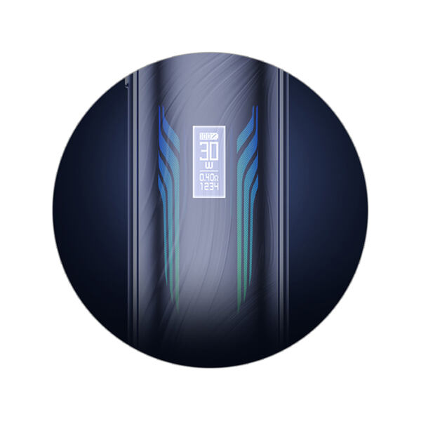 O všech potřebných parametrech budete mít neustálý přehled díky praktickému skrytému displeji na předním panelu. Tento displej je zapuštěn do těla a nevyčnívá, krásně tedy splyne s celou konstrukcí zařízení. Na displeji si můžete snadno ověřit aktuální procentuální stav baterie, nastavený výkon, odpor připojené cartridge, zvolený výstupní režim nebo aktuální počet potahů.