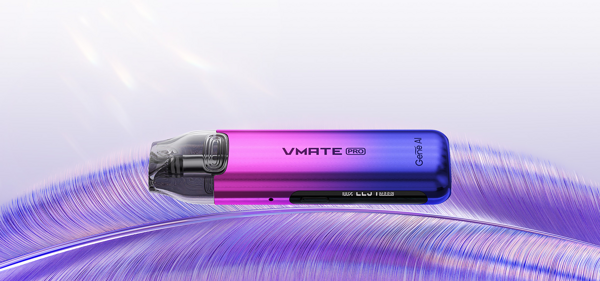 Elektronická cigareta - MTL potah, baterie 900mAh, objem 3ml, automatické spínání, výkon 5-25W, dobíjení USB-C, regulace air-flow, OLED displej, platforma Vmate Pod, technologie iCosm Code, hliníková konstrukce těla.