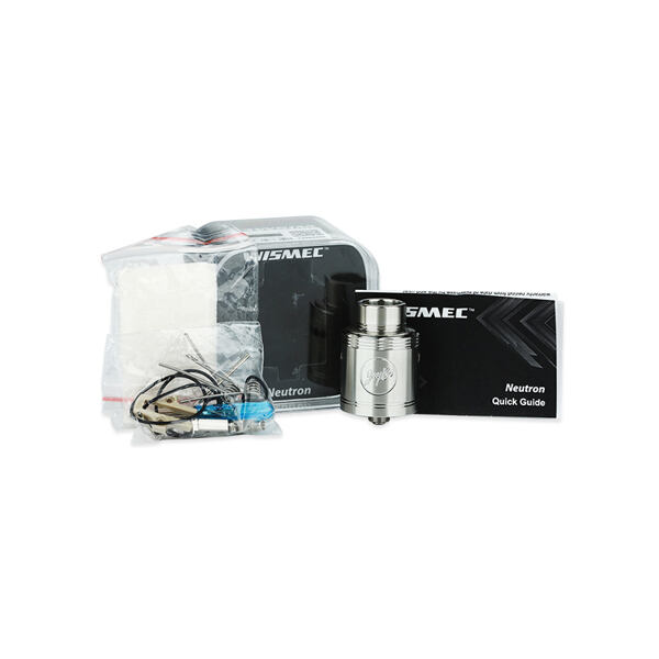 Wismec Neutron je jednoduchý dokapávací atomizér s luxusně navrženou základnou, kterou si můžete podle potřeby upravovat sami. Atomizér je k dostání v krásné stříbrné barvě. O jeho design se postaral známý návrhář Jay Bo, který úzce spolupracuje se společností Wismec na výrobě a designu jejich produktů. Průměr atomizéru je 25 mm a jeho délka 39 mm.