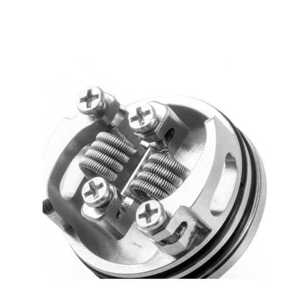 Celý atomizér je vyroben z hliníku a vrchní, široký náustek je vyroben z resinu. Dohromady tvoří komplexní celek a představují úchvatný design a stylové zpracování. Uvnitř atomizéru se nachází nová základna pro instalaci celkem dvou spirálek. Kontakty jsou dostatečně široké i pro silnější dráty typu clapton. Jistě oceníte jednoduchou instalaci, kterou hravě zvládnou i začátečníci. Základna navíc disponuje dostatkem prostoru pro usazení vaty.